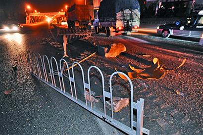 记者闻讯赶到现场看到,在黑龙江中路海尔立交桥北向南下桥路段,20多米长的护栏扭曲变形倒在地上,装着爆闪灯的隔离墩翻倒在地,一辆严重变形的白色面包车停在路边,车头顶在桥边的护栏上,左前侧车轮飞出四五米远,右前侧车轮在撞击中变形折断,一整块破碎的前挡风玻璃横在桥下的沟里,右后侧车门在撞击中变形翘起,副驾驶座位上还有斑斑血迹。 记者注意到在面包车后面留下了50多米长“之”字形的刹车痕,车后3米处留有一摊血迹。据目击者称,车祸发生后,车内受伤较轻的4人将副驾驶座位上浑身是血的男子拖出车外,就平放在车后血迹处,120急救人员刚刚将这名男子送上救护车。 一车闯进事故现场撞车 “前方道路受阻,请绕道行驶”正在处理现场的警车灯光闪烁,记者在现场看到,一辆哈飞轿车突然从北面冲了过来,等轿车司机看到正在处理的现场时急踩刹车,然而轿车车轮已经碾轧上了倒在地上的隔离护栏失控,司机急忙右转,撞上了同向行驶的油罐车,油罐车司机急踩刹车,但车速太快,哈飞轿车被油罐车拖出六七米远,在发生车祸的面包车旁边停下,并未与面包车造成二次碰撞,轿车内3人和油罐车上1人幸未受伤,但黑龙江路北向南方向车道被完全堵住,110民警在现场以北100米处重新设定路障,20多分钟后才恢复通车。 车灯晃眼下桥路成危险路段 “这是一段下坡路,面包车车速很快,司机可能是被对面汽车的大灯晃了眼睛,才会突然失控的。”出租车司机王先生称,他每次经过这个路段都要减速慢行。记者从处理现场的民警处了解到,海尔立交桥下桥处为交通事故高发路段,主要原因是夜间经过该路段的车辆较多,大部分司机放松警惕车速较快,在下桥时因为对面驶来的汽车没有及时把远光灯转成近光灯,司机被强光直接照射眼睛,会出现行为失当汽车失控。他们已经在路中间的隔离墩上设置爆闪灯提醒司机,希望司机们能够自觉遵守交通规则,为自己和他人的安全及时变换车灯,小心驾驶。 昨天上午记者再次来到市第八人民医院了解到,事发前面包车上5人刚在李村聚会,当时开车前往河西,车祸造成副驾驶座上的男乘客颅骨骨折,鼻软骨骨折,胸部受到重创,但生命体征稳定,暂时没有生命危险,其他4人均为轻伤。 (记者 黄飞 于 滈 摄影报道) 相关链接 同一路段车祸频发 10月17日夜里10时45分,25米长的蓝色解放运输车在海尔立交桥北向南下桥处急转弯,后面驶来的红色重汽自卸车刹不住车撞了上去,两车堵了黑龙江路5个车道,就在交警设法拖动运输车离开现场时,一辆绿色拖挂车刹车失灵冲进现场,为躲避围观人群与两车二次冲撞,幸未造成人员伤亡。直到第二天中午11时30分,事故车辆被全部拖离现场,车祸造成千余辆车通行受阻。 10月22日夜里9时30分左右,黑龙江路海尔立交桥下桥口,一辆黑色吉利轿车、一辆白色面包车和一辆福田小货车接连相撞,车上5人受伤,其中一名怀孕9个月的孕妇腹部受到撞击,经过市第八人民医院紧急抢救,产下一名健康的女婴。 |