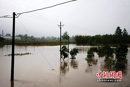 6日上午,记者在赶赴垫江县的途中,天空仍飘着小雨。记者在沿途看到,垫江多处农田、林地被淹,有农户房屋门前的道路被洪水阻断。澄溪镇陈家桥村村民称,该村附近的一条河流一夜间涨水1米多,农田的低洼地带大多都已被淹没。