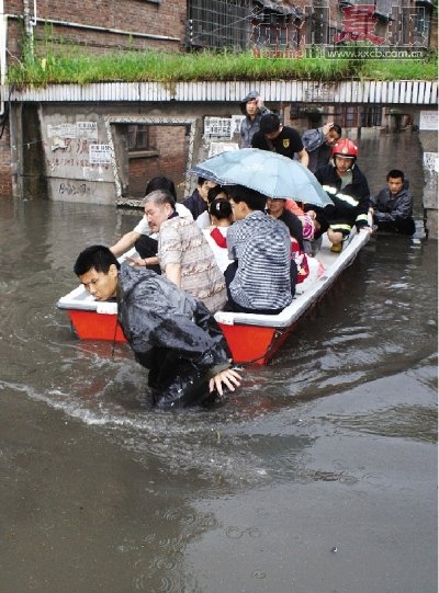 昨日,暴雨突然袭击湖南多个市州,暴雨带来的地质灾害给新化县造成巨大损失,该县防指通报,截至昨日19时,已造成5人死亡,2人失踪,全县5300多名学生停课。昨日上午,新化县立新小区,消防队员使用冲锋舟进行救援。图/新化县消防大队。