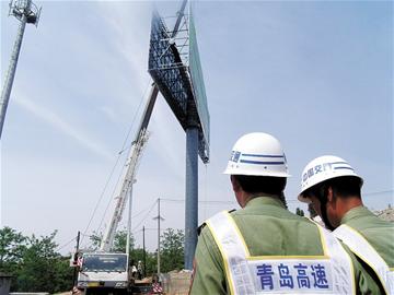 早报讯 一夜之间,青银高速路旁竖起一个近20米高的高炮式大广告牌,而这个重达10余吨的庞然大物,竟然只靠底部一个数立方米的混凝土基座支撑。昨日,市高速公路管理处与崂山区城管、公安联合执法,将这一违法竖立且存在安全隐患的高炮广告牌强行拆除,拉开了依法处置高速公路建筑控制区内违法广告牌专项行动的序幕。