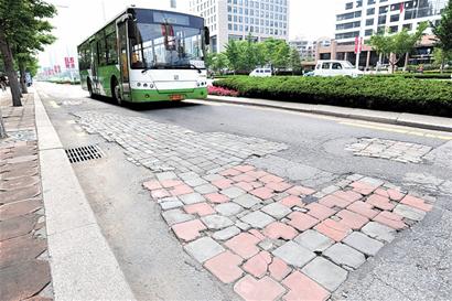 下午3时许,记者在香港中路与南京路附近的公交车道看到,许多路面裂缝下陷,下陷路面采用沥青补填方式维修,一些下陷较深的路段甚至垫上了砖块。浮山所公交车站前方近百米长的公交车道打满砖块补丁,公交车驶过时颠簸得非常厉害。“真该修修了,公交车经过这些路段时,乘客在车上都站不住。”刚下车的孙女士说。据介绍,这段公交车道翻修时,路基将全部按照重型车道翻修,施工期间,公交车将暂时借用外侧车道通行。“规划设计已经完成,下一步将开始施工单位的招投标,预计很快就能全面施工。”罗工程师表示,公交车道翻修后将一劳永逸,不会再出现路面塌陷等情况。 (记者 赵健鹏 摄影报道)