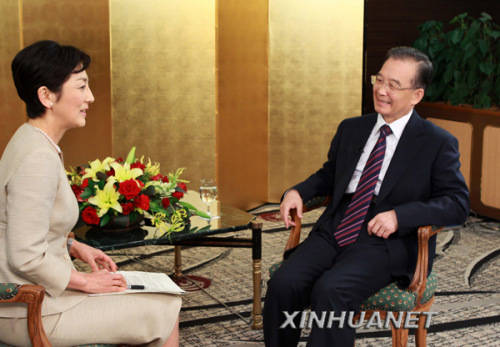 6月1日,中国国务院总理温家宝在东京接受日本NHK电视台专访。新华社记者 庞兴雷 摄