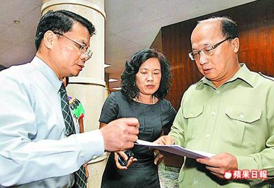 台中市警局长胡木源(左)昨向市长胡志强说明四警惩处过程。