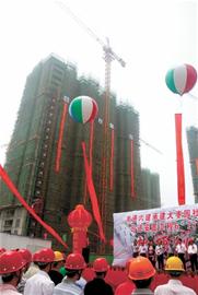 “拆迁是从2008年开始的,刚拆迁房地产商资金链就断了,我们也不知道什么时候才能搬回来。”在封顶仪式的现场,几名居民告诉记者。记者采访了解到,受金融危机影响,2007年12月正式开始拆迁计划,2008年年初曾因承建方的撤离搁浅一段时间,直到新的承建方入住项目才顺利开展。2009年7月,中南控股集团中标大枣园旧村改造安置房项目工程施工。整体项目开始施工以后,加快了居民回迁安置房的建设步伐。