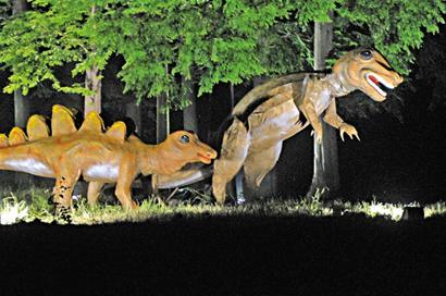 早报讯 昨晚,中山公园夏季灯会正式试灯,在欢动世界主题乐园人工湖上打造的侏罗纪公园内,恐龙岛成为一大亮点。据悉,本届灯会7月1日开始,特点是充满声光电元素。