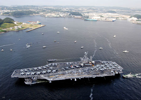2008年9月,“华盛顿”号核动力航母驶入日本横须贺港,并开始以该港作为该舰的母港。