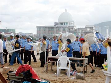 昨天上午,崂山区9部门联合执法,对石老人海水浴场非法经营项目进行了彻底整治。同时,海水浴场的基础设施改造也已经全部完成,两家正规运营商昨天正式进驻海水浴场。继本月24日试运行后,石老人海水浴场将于30日向游客正式开放,收费维持去年的标准。