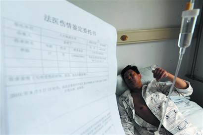 昨天下午,记者来到第九人民医院外一科,李师傅正在病房里打吊瓶,他的左脸有明显的青色瘀肿,他躺在病床上直说头痛。回忆起被打的经过,李师傅一脸的无奈。据李师傅介绍,前天下午3点左右,他接到通知观音峡路26号有一位老人骨折,需要紧急送往医院,他立刻驾车带着医护人员前去,医护人员上楼后,他就在楼下等待。