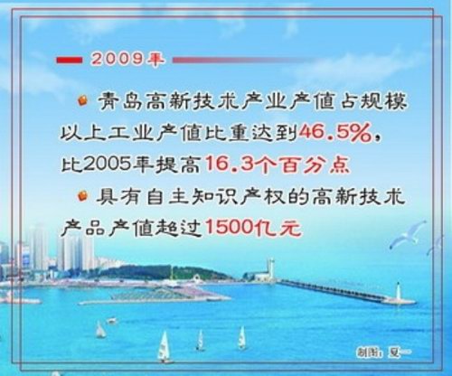 请看这样一个变化:到2009年底,青岛市三次产业比例为4.7:49.9:45.4,服务业增加值占GDP比重为45.4%,工业增加值占GDP比重为44.8%,经济发展呈现出服务业和制造业“双轮驱动”的新局面。
