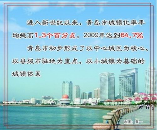 进入新世纪以来,青岛市城镇化率年均提高1.3个百分点,去年达到64.7%,初步形成了以中心城区为核心、以县级市驻地为重点、以小城镇为基础的城镇体系。