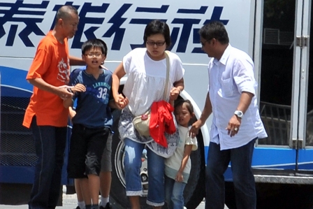 获释的三名小童和他们的母亲