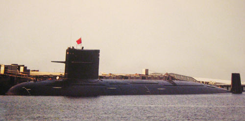 东方网资料图:码头上停泊的中国海军093级攻击型核潜艇。