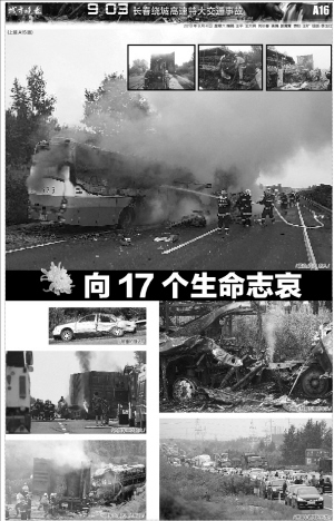 昨日是“9·03”长春市绕城高速公路特大交通事故发生的第5天。连日来,吉林省、黑龙江省及青岛市的调查组积极处理此次重大交通事故,17名死者家属及死者遗体的DNA样本采集工作已于昨日全部结束,近两日内将公布DNA样本的比对结果,并核定出每名死者的具体身份。昨日,事发大客车所属的青岛华旅运输有限公司的工作人员为每位死者家属送来3000元慰问金。