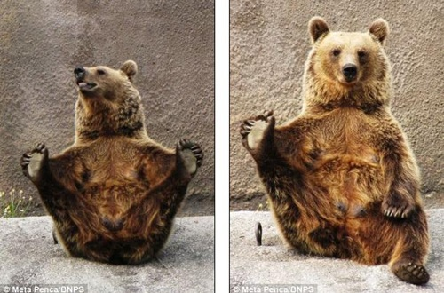 芬兰动物园名为Santra的棕熊做瑜伽,动作标准