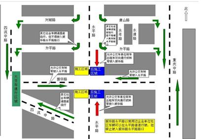 永平路、振华路口的施工从今晚10时开始,具体施工点分别在该路口的永平路南北两侧。施工时要首先对道路东侧同时进行施工,完工后再对道路西侧同时进行施工,届时,该路口的永平路两侧路口将仅剩余两个车道用于双向通行。