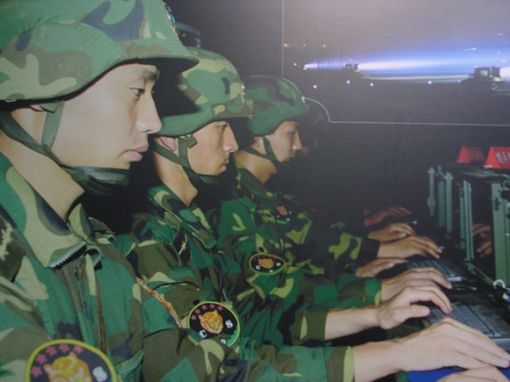 资料图:解放军已经建成第一个网络战基地,这是其在信息化战争时代加强军队数字安全努力的一部分。官方称之为信息保障基地。图为演习中的解放军官兵。
