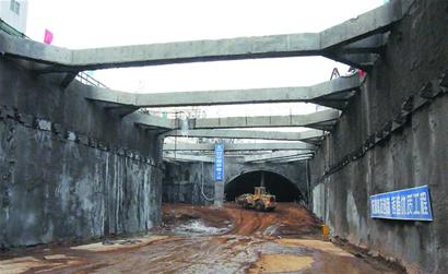 施工人员介绍说,四川路主隧于去年5月1日正式开工,隧道总长1638米,其中明挖段长度68米,暗挖段长度1570米。“四川路主隧道地质条件较差。 ”据介绍,在进洞处有223米的V级破碎围岩浅埋暗挖段,洞顶范围内围岩风化严重,而且该段覆盖层厚度约为2.1米-10米,而隧道最大开挖宽度达18.3米,属于超浅埋隧道,施工难度较大。