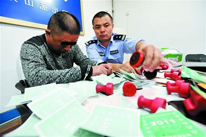 经审查,42岁的店主嫌疑人吕某交待,他发现许多超期车辆在年审和二手车交易时,很难通过环保尾气检测,他从网上以每张15元的价格批发了1000张假黄绿标。今年初,吕某向周围经营二手车的业户“放消息”:自己认识环保局的人,花50元不用检验就能办出 “黄绿标”。1000张假黄绿标很快销售一空,吕某又从网上订购了一批,半年多时间里,卖出2000多张“黄绿标”。昨日中午,警方将给吕某刻制假公章的孙某也抓获归案。(记者 赵健鹏 通讯员 张勇 摄影报道)