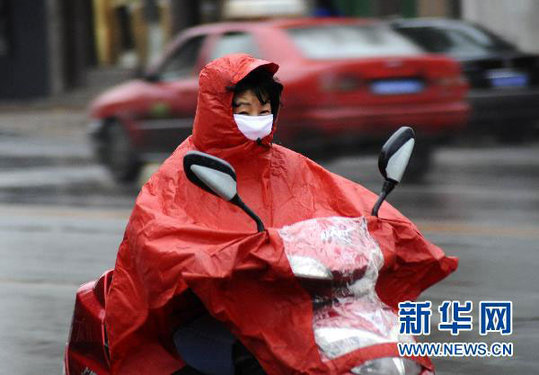 10月24日,一位沈阳市民“全副武装”骑车出行。