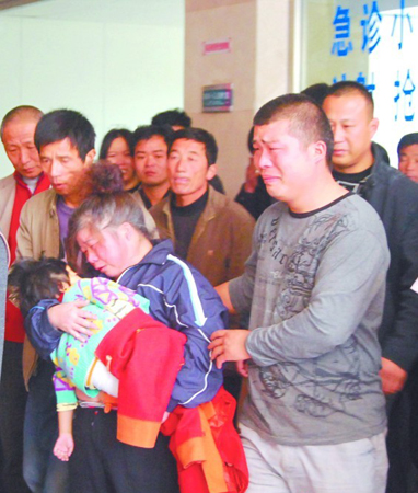记者随后来到儿童医院,在三楼病房的走廊里见到了正在接受抢救的小女孩。医生和护士正在忙前忙后对其进行救治,受伤小女孩的头部已经被纱布缠住,小手还不断地挠着床沿,嘴里一直喊着“我要尿尿”,女童的父母则在一旁哭成了泪人。