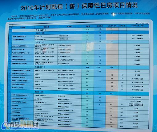 廉租住房保障家庭实现应保尽保,累计已有9462户户低收入住房困难家庭通过租金补贴、核减或实物配租方式得到保障,符合廉租住房保障条件的家庭实现了应保尽保。2.4万套保障性住房全面开工建设。根据《青岛市住房保障发展规划(2008-2010年)》的安排,三年计划开工建设保障性住房24000套。