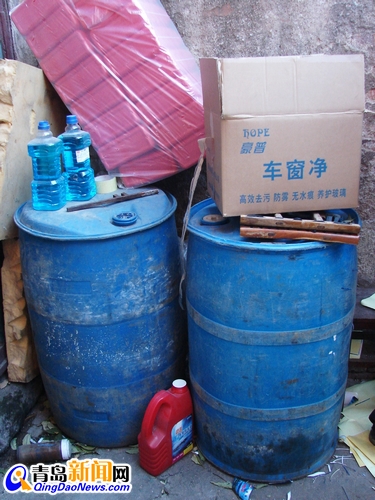 青岛新闻网11月3日讯 开车的朋友都会用到车窗净(俗称“玻璃水”),可谁又会留意商品的真伪?近日,青岛市质量技术监督局12365热线接市民举报,在四方区杭州路的一处偏僻民房内,端掉一个专门生产劣质“玻璃水”的黑窝点,现场查获大批成品“玻璃水”、防冻液。