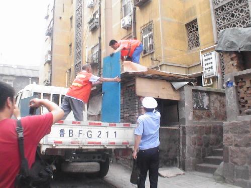 青岛新闻网11月18日讯 小区院内私搭木板房,城管拆了三回,“倔强”业主重新盖了三次。近日,市北区城管执法局对甘肃路65号院内的违规木板房进行了第四次强制拆除,并对业主罚款1000元。