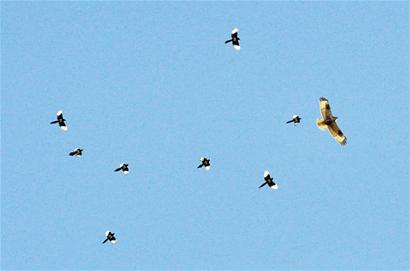 鹊群向老鹰发动攻击