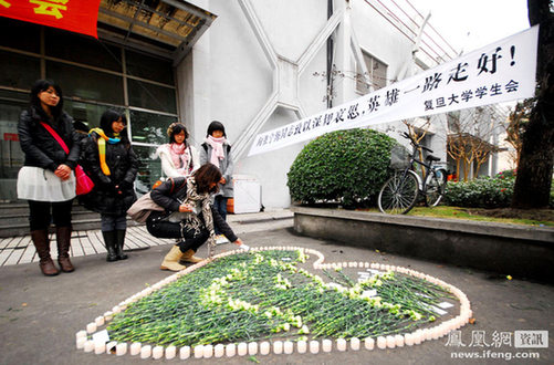 2010年12月14日,上海复旦大学校园内,学生悼念遇难民警张宁海。