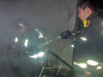 “大火是从居民楼的4楼着起来的,当时我还在家里睡觉,突然闻到一股很浓的烟味,我还以为是家里着火了,打开门才发现楼道里满是浓烟,一个劲儿往屋里灌。”用湿毛巾捂着口鼻从楼上冲出来的王先生告诉记者,他吓得立即关闭了屋门,把自家的电闸关了,并拿来湿毛巾捂着自己和妻子的口鼻,穿着保暖内衣从楼里冲了出来,到楼下后才知道是自家的楼上起了火,屋外实在太冷,他冒险冲回家里抱出了一些保暖的衣物。3辆消防车随后赶到现场,消防队员架起高压水枪冲进楼道内灭火。 救出10多名居民 “楼上大概有10多名居民被困,楼道里的烟实在太浓了,拿着手电都看不清路,他们下楼要经过4楼起火房间的门口,又弄不清楚火势,根本就不敢往下走。”目击者刘先生告诉记者,大火很快就烧着了阳台,并从窗口向5楼蔓延,5楼的窗户已经被烧着,浓烟灌进了屋里,10多名居民趴在窗口大声吆喝着求助。