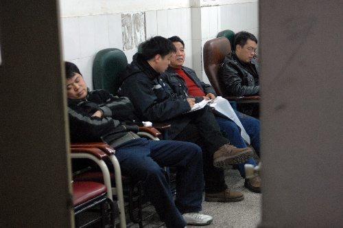 杭州,2010年12月17日 杭州机场高速两大巴相撞交通事故中死亡人数升至六人 12月16日晚,事故中的一名轻伤者(右二)在医院接受调查人员的问询。 新华社记者黄宗治摄