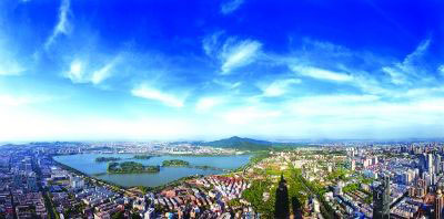 在紫峰大厦72楼观光层俯瞰南京城。宋峤 摄 图 据扬子晚报