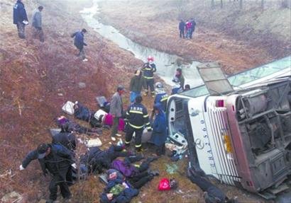据现场的村民介绍,事故发生后,从大客车里救出了大约三四十人,遗憾的是,有一女两男三人当场不幸遇难,但这一数字尚未得到警方证实。另据目击者介绍,当时大客车上的乘客大都是中老年人。