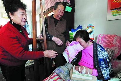 ![]() 偏瘫的她不想拖累老伴 韩敦义,77岁;张秀兰,73岁。两人从二十几岁结婚后,一路牵手走过50多年,日子虽然过得磕磕绊绊,但两人相扶相助,一家人生活也很和睦。6年前,张大妈不幸得了偏瘫,吃喝拉撒只能在床上,而韩大爷丝毫没有嫌弃老伴,一直尽心尽力地照顾老伴。可最近三四个月,张大妈脾气变得特别坏,整天找茬吵架,还非要闹着和韩大爷离婚,韩大爷执意不肯,张大妈便要死要活。 “她怎么可以这样对我啊?”韩大爷经常哭得老泪众横,苦劝老伴无果,韩大爷只好跑到海琴社区求助,“和事佬”协会迅速展开一场化解家庭危机的行动…… “金婚”夫妇突然闹起离婚 住在洛阳路29号甲的韩大爷和张大妈夫妇,在外人眼中,可谓典型的模范夫妻,结婚50多年来很少听见两人拌嘴,更不用说吵架。而最近几个月,邻居们却经常听到两人大声吵架,偶尔还会听到摔碎东西的响声,而张大妈吵完后经常呜呜大哭,哭着诉说韩大爷对她不够关心,不给她做好吃的,不为她治病…… 当时说起这事,韩大爷是一脸的委屈:每天早晨一起床他会为老伴换洗尿布,随后为老伴做可口的早饭,然后一勺勺地喂给老伴吃;上午赶完早市,为老伴洗完尿布,他又忙着为老伴做完午饭再喂饭;中午也顾不上午休,洗刷完碗筷,再赶去医院为老伴拿药,回来再准备晚饭;自学按摩的他,晚上会为老伴按摩偏瘫的双腿…… “做到这样还再怎么做呀?”让韩大爷想不明白的是,他这样照顾老伴,老伴咋还非要和他离婚呢?韩大爷想不明白,社区邻居们就更纳闷了,张大妈的葫芦里到底卖的是啥药啊? “和事佬”探出背后隐情 老伴执意要离婚,闹到最后除了找茬吵架,甚至以不吃饭“抗争”,被逼无奈的韩大爷只好到海琴社区居委会来诉苦。张大妈患上偏瘫卧床不起,心情肯定会变差,但凭借夫妻俩这么多年的感情,她肯定不会无缘无故地闹离婚……海琴社区“和事佬”协会会长纪玉兰听完韩大爷的哭诉后,感觉事情没有这么简单,于是她拉上协会会员及居委会副主任谭梅芳一起去探望张大妈。 “你们老两口走到今天不容易,大爷里里外外照顾这个家,还尽心尽力伺候你,你咋还不满意呢?”面对“和事佬”们的劝说,张大妈不为所动,仍然执意要离婚。第一次调解以失败告终。 回到家后,纪玉兰反复想这事,就是想不通张大妈为啥离婚。第二次纪玉兰挑了个半下午,和会员们又一起去做张大妈的思想工作,这次张大妈的态度有点转变,韩大爷又再次哀求老伴不要离婚,张大妈口头上仍然不同意,但眼泪却哗哗地流。看到这一幕,纪玉兰更加确定原先的猜想——张大妈背后肯定有隐情。 又过了三天,纪玉兰没有找别人,趁晚上韩大爷外出拿药空当,她又独自来找张大妈谈心,经过她苦口婆心的劝说,张大妈终于透露实情。“我是太疼老头子,不想自己偏瘫拖累他,所以才想到离婚。”说到这话时,张大妈数度哽咽。得知实情后,纪玉兰又多次给老两口做工作,终于让他们重归于好。 危机化解老两口更加恩爱 “来,老伴张张嘴,再喝一口。”去年12月31日中午,记者和“和事佬”到韩大爷家回访时,看到韩大爷正在给张大妈喂饭的温情一幕。张大妈由于偏瘫无法去医院输液,韩大爷便让老伴在家里挂吊瓶,而他也自学了拔针、换吊瓶等基本医药服务。给老伴拔针时,韩大爷显得小心翼翼,而且关切地问老伴“疼不疼”,夫妻深情尽在不言中。 对于韩大爷做到的这一切,张大妈也看在心里,对自己前不久闹离婚的事也感到有点不好意思。“这些年来都是老爷子照顾我,我心里真是很感动……”说到动情处,张大妈情不自禁地啜泣起来,站在一旁的韩大爷赶紧拿毛巾去给老伴擦拭眼泪。 看到老两口如此恩爱,“和事佬”协会会长纪玉兰长长地舒了一口气。楼上楼下因晾衣服滴水起争执,早起上班邻居皮鞋踩踏楼梯响声大,婆媳不和天天吵架……“和事佬”协会成立一年多来,已陆续解决像上述的居民纠纷30多起,赢得老百姓信任,现在哪家有了矛盾,首先想到的就是“和事佬”。 |