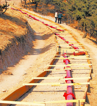 430米管道紧贴登山路