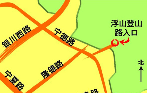 这是浮山宁德路附近的登山口(红圈中)。