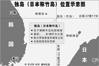 “独岛”位于朝鲜半岛东部海域,面积0.18平方公里,由韩国实际控制。韩日都宣布对这座岛拥有主权。