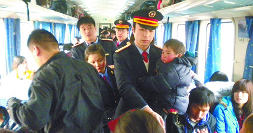 “这趟列车是近两年刚加的列车,还有两趟去西安方向的,还不算是最挤的。春运以来,列车超员越来越多,以前全车一共9节硬座车厢,春运加了2节硬座车厢,仍然超员。”王伦说。