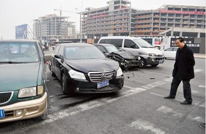 “此后奔腾轿车又向右冲,跟一辆皮卡撞了一下。”赵先生说,事发后,伊兰特车上的男司机打开车门走了出来,并连连向其他司机道歉,称自己是新手,没喝酒,只是误把油门当刹车了。随后赶来的交警将伊兰特司机控制住,并对他做了酒精含量检测,初步确定该男子并没有饮酒过量。“从现场情况看,事故是由这名伊兰特司机造成的,他负主要责任。”现场一名交警告诉记者。(赵玉勋 摄影报道)