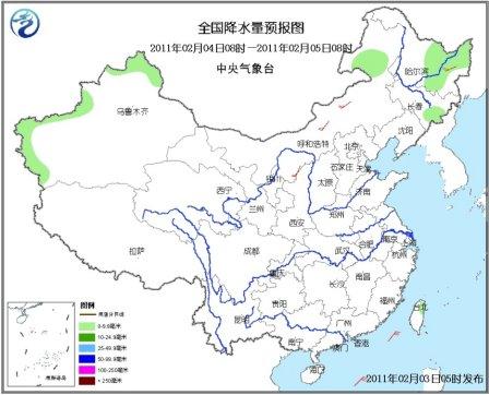 5日08时至6日08时,新疆北部和西部、内蒙古东北部、黑龙江大部、四川盆地东北部及重庆北部等地的有小到中雪(雨)或雨夹雪,其中,新疆西北部的局地有大雪;内蒙古东部、东北地区东部等地有4~6级风;南海将有5~7级风。