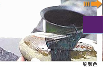 3、蜡染工艺,先在石头表面涂上一层蜡,然后用化学药品浸泡一段时间,洗去蜡质后,在无蜡部分便出现所需的图案。
