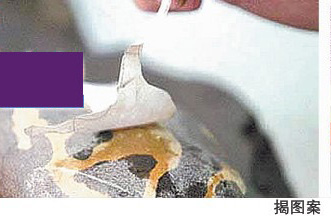 1、剪出图案,贴于石面,涂上染发剂,揭去贴物,原贴物覆盖部分就留下浅色所需图案。