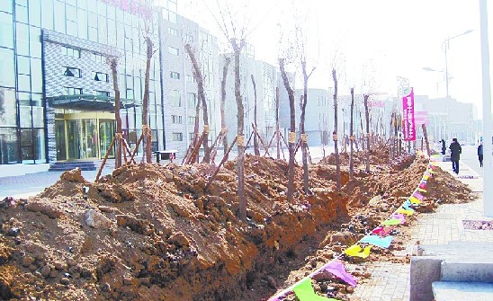 18日下午,记者联系了青岛担保信息基地工程指挥部一位姓王的负责人,对方告诉记者,这个项目并不存在重复施工,这次开挖情况比较特殊。年前在这里召开了一个全国性的会议,就先把路面全都铺好了,但是因为配电需要相应的手续还没有审批完,所以做了一个临时的绿化带,栽的是只有三个月花期的花草,旁边栽种的桦树因为比较耐冻,开挖时也特意避开了。这次把电缆埋好以后就会把绿化带恢复,再植上草皮,可能需要一周时间。(记者 陈界交 孙倩)