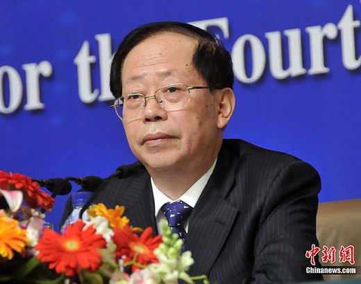 3月12日14时30分,梅地亚新闻中心。农业部副部长危朝安,农业部总经济师、办公厅主任、新闻发言人陈萌山将就“十一五”农业发展成就和“十二五”农业发展规划回答中外记者的提问。图为农业部副部长危朝安出席记者会。中新网记者 朱鹏英 摄