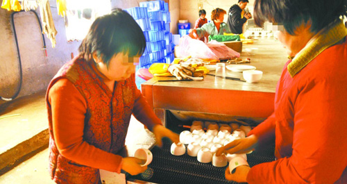 记者发现,这些工人连消毒手套也不戴。“我们来这里干活才三两天的时间,哪有那么讲究?”一名女子说,她是两天前才被老板招到这里干活的,“其他几个也是刚来不久,都是从劳务市场临时招来的”。