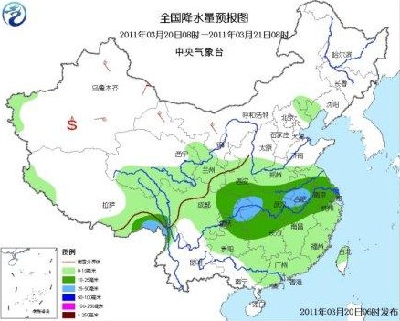 20日~23日,西北地区中东部、华北西南部、黄淮及淮河以南大部地区将有一次明显降水过程,其中,贵州东北部、重庆中东部、湖北西南部和东北部、湖南西北部和中部、苏皖中南部、浙江北部、上海等地的部分地区有大雨,局地暴雨;20日~21日,西藏东部、川西高原北部、青海东南部等地的部分地区有大雪(雨),川西高原北部的局地有暴雪。