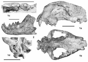 临夏西瓦猎豹的头骨和下颌骨化石资料图片