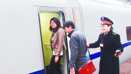 下午2时许,李英表示列车已经到站,现在可以上车了。“这趟列车的票都卖光了,按照规定谁都不能上车了。但是遇到这种情况,我们先让这两位志愿者上车,然后再补票。”接着,她亲自将两人送上火车,并告诉列车长照顾他们,最好能找两个座位。下午 2时 30分许,列车缓缓驶出车站。不久后,记者与陈欢欢短信联系获悉,他们找到了座位,目前一切顺利。