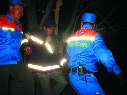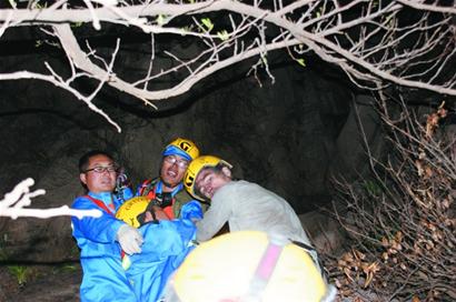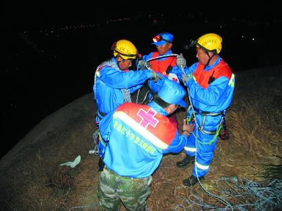 为保万无一失,老甄首先试降,当老甄安全下到崖底时,救援出现意外,因为山间风力过大,绳索被吹得偏离原位,还在半山腰的老纪已无法抓到绳索。蓝天救援队的李队长在山顶放下一根50米长的绳索,带着另外一根救援绳索降到被困的杰森身边。他用扁带将虚弱的杰森和老纪固定在一起,用携带的这根救援绳将两人索降到了崖底。此时已经是凌晨零时21分,消防队员让出一件大衣给杰森穿上保暖,在山崖下接应的救援队员老孙拿出了压缩饼干和矿泉水,杰森一阵狼吞虎咽后终于恢复了一些体力,并不停地竖起大拇指,向救援人员表示感谢。昨天凌晨1时左右,杰森被救援人员安全带到山下,民警将他带到麦岛派出所吃饭梳洗后,将他送回住处。(记者 黄飞 通讯员 刘海青)