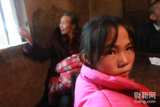 凤形村11岁的女孩袁娟娟,寄居在姥姥家。她的妹妹8个月时被抢走至今下落不明。陪记者采访的村民说,她的妈妈已经精神失常。财新记者 李漠